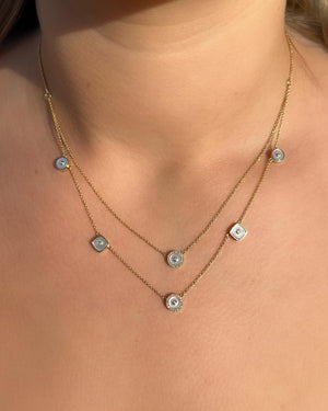 Mother of Pearl and Diamond Station Necklace 18ct Yellow Gold 0.13ct