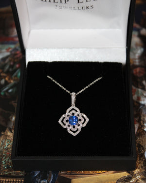 Art Deco Style Sapphire and Diamond Pendant 0.28ct + 0.89ct 18ct White Gold