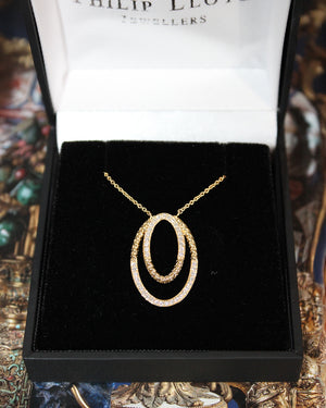 Contemporary Diamond Double Oval Pendant 18ct Yellow Gold 0.25ct
