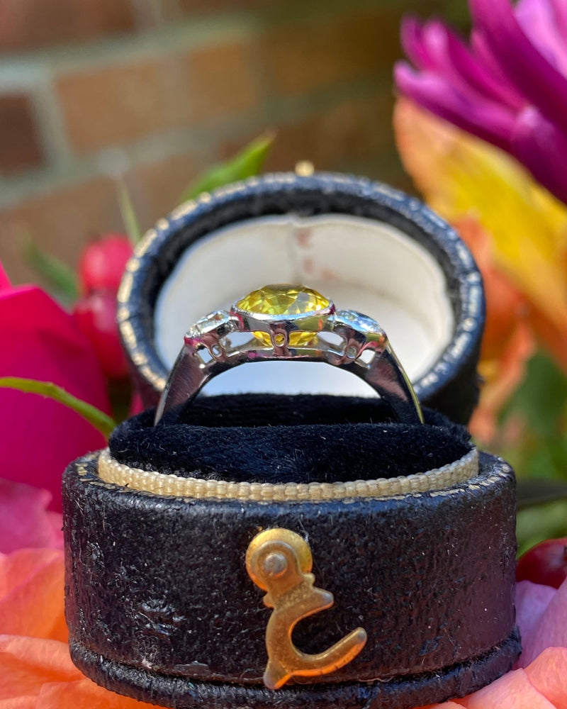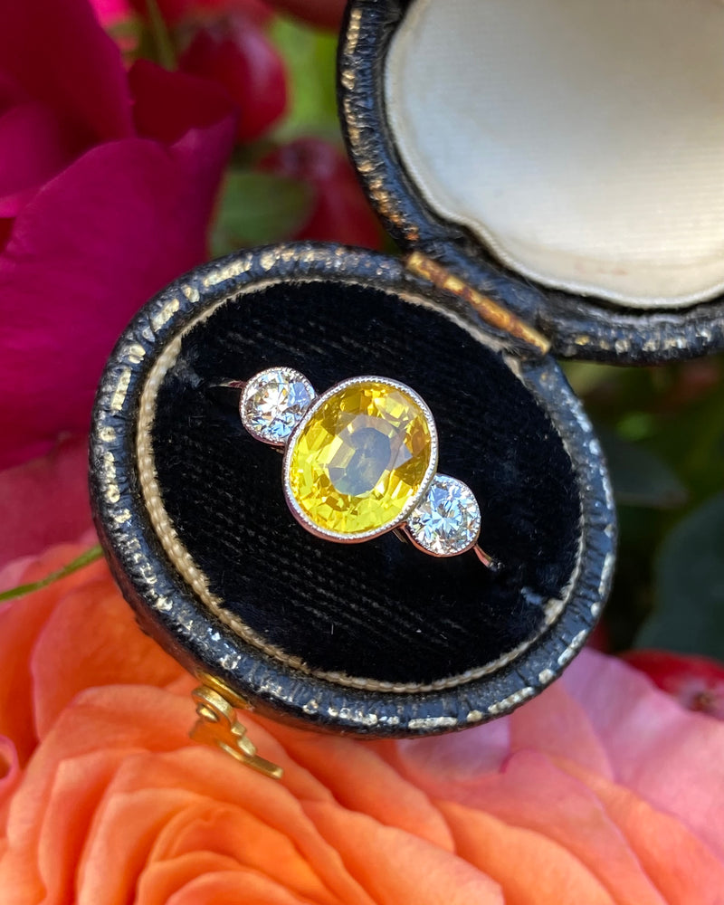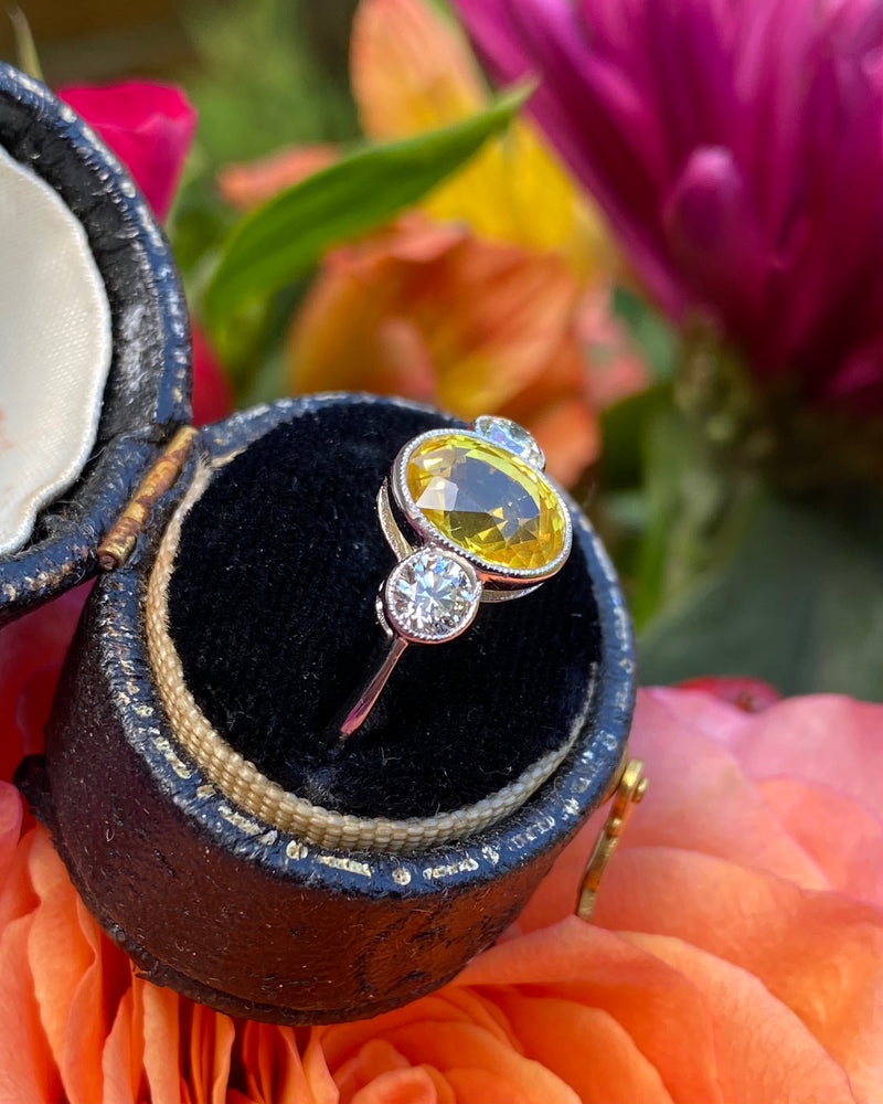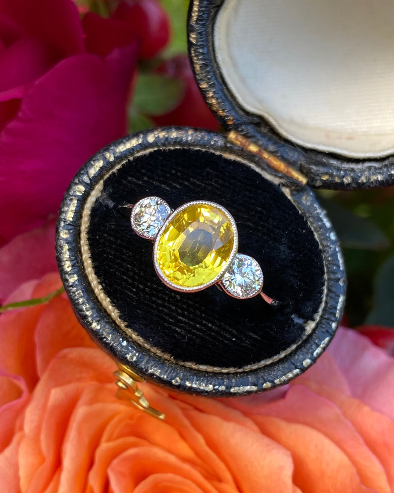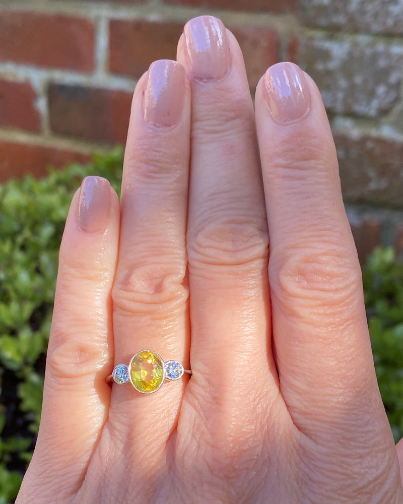 Yellow Sapphire and Diamond Three Stone Ring Platinum 0.44ct + 2.50ct