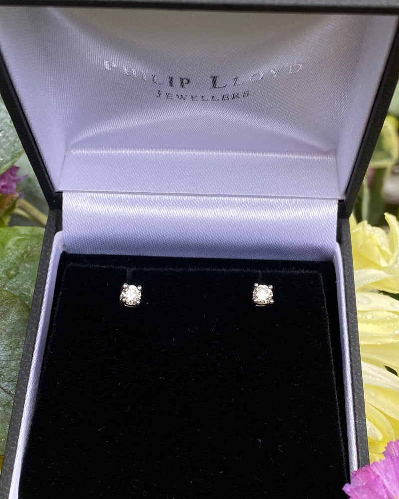 A classic pair of Diamond Stud Earrings, set in a simple four claw white gold setting, really letting the sparkling diamonds shine! The Brilliant Cut Diamonds are bright and clean, H/I colour, VS/SI clarity and an impressive 0.42ct in total! The earrings have butterfly back fastenings.