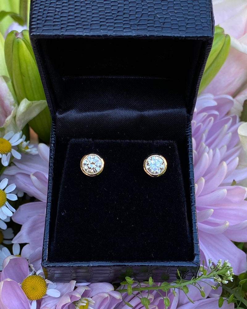 1.02ct Classic Diamond Rubover Stud Earrings 18ct Yellow Gold