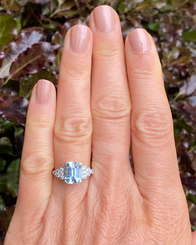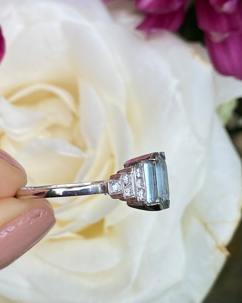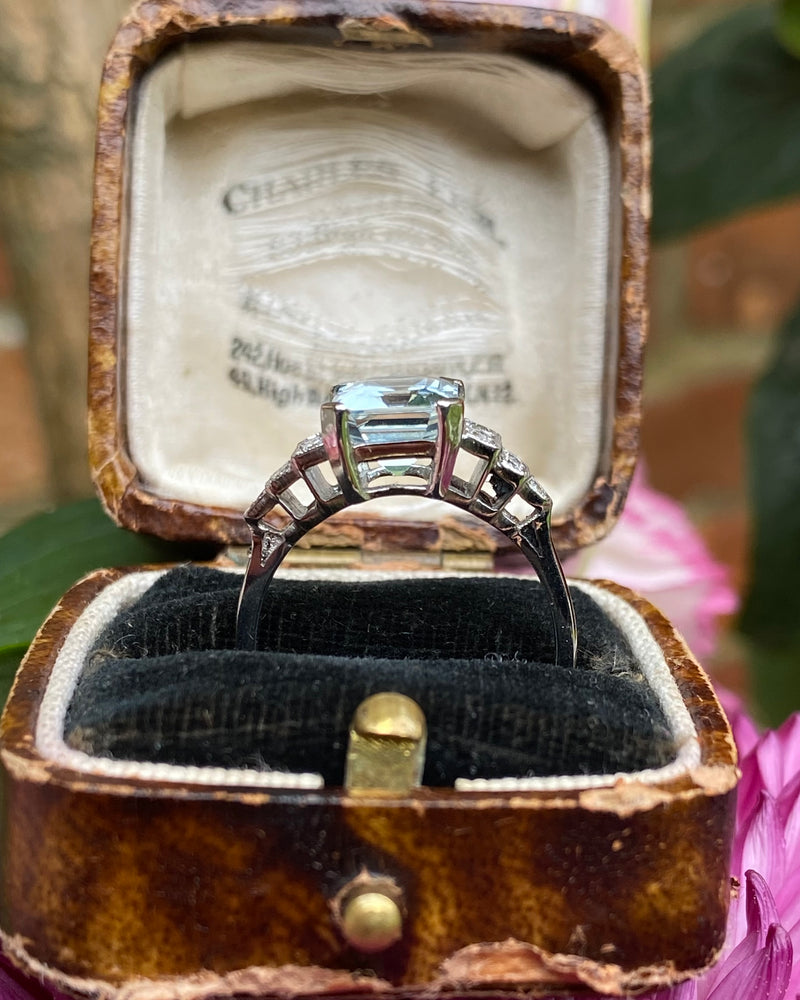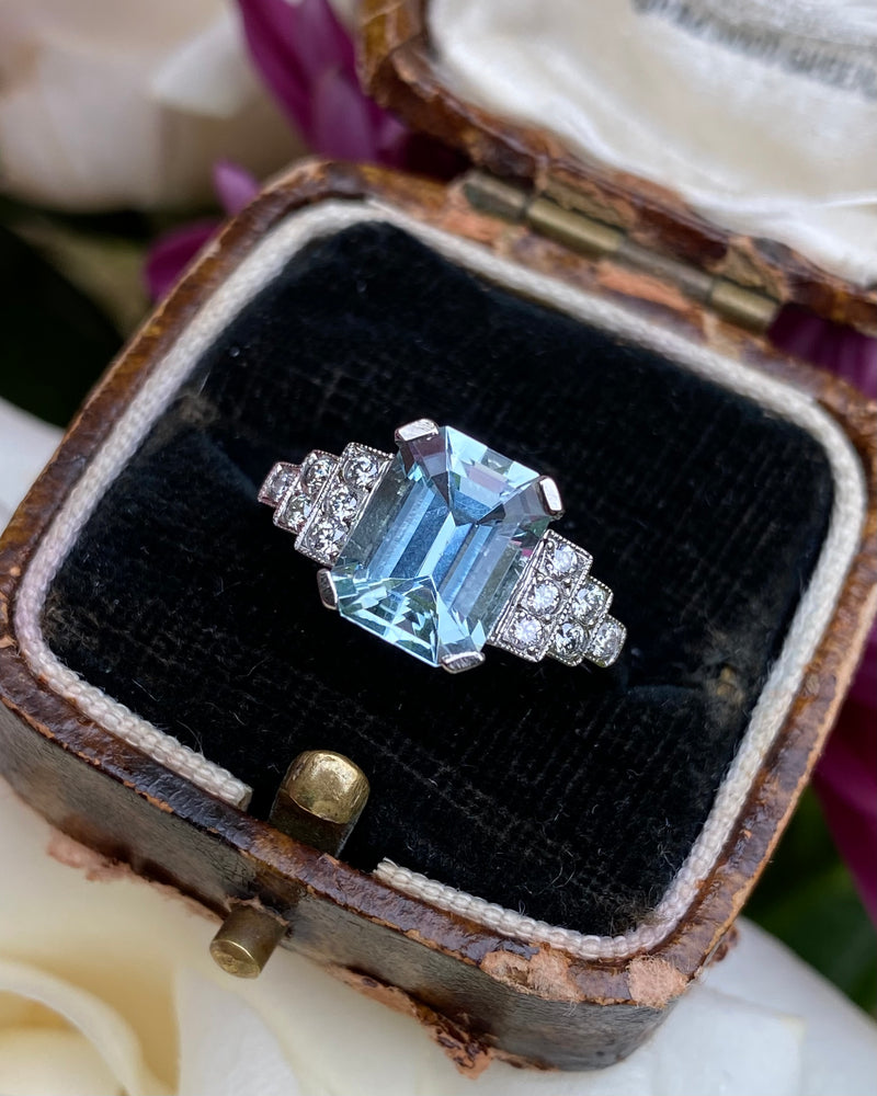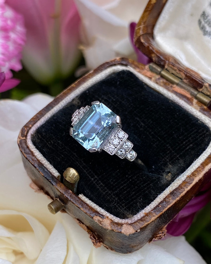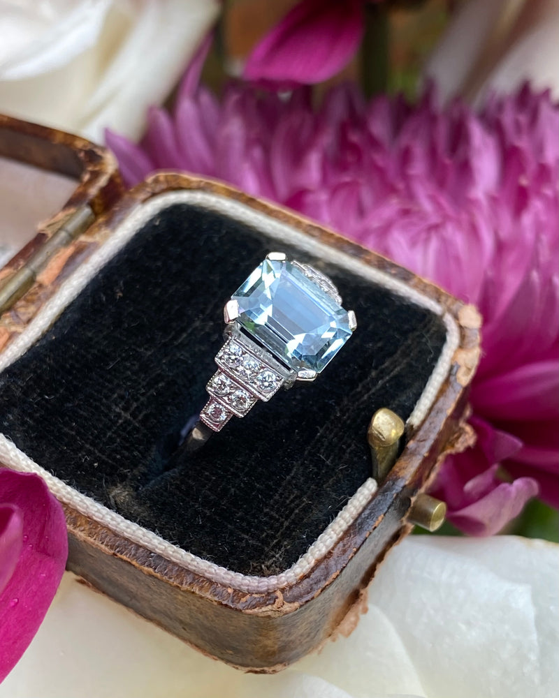Art Deco Aquamarine and Diamond Ring Platinum 0.25ct + 2.05ct