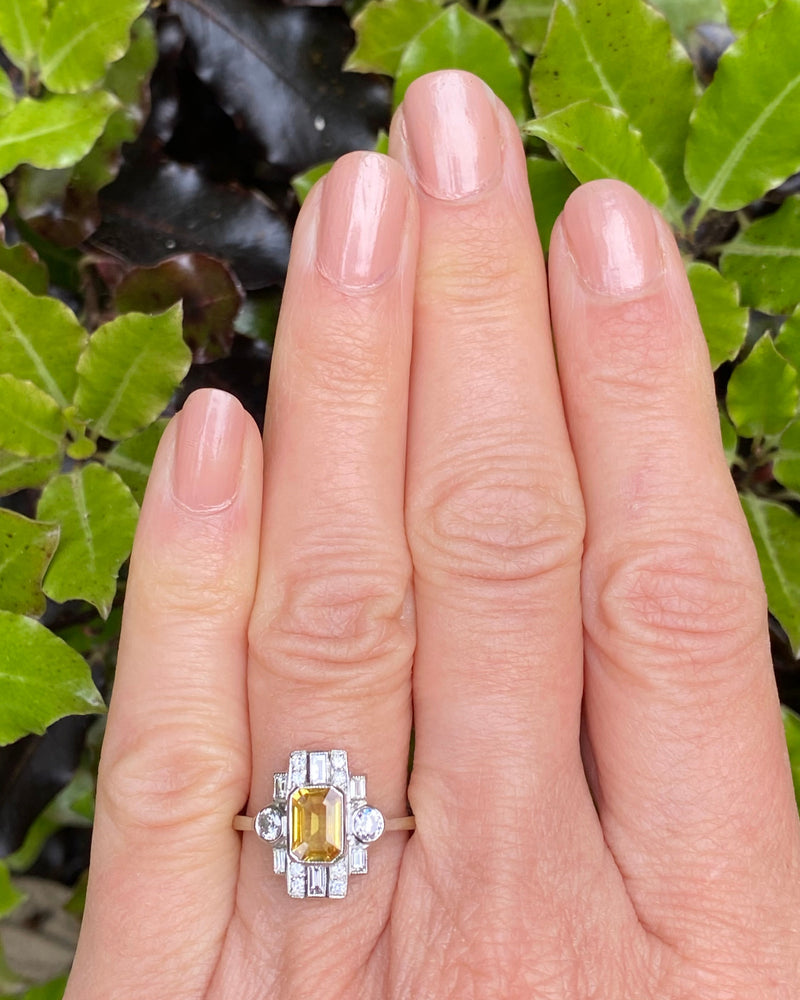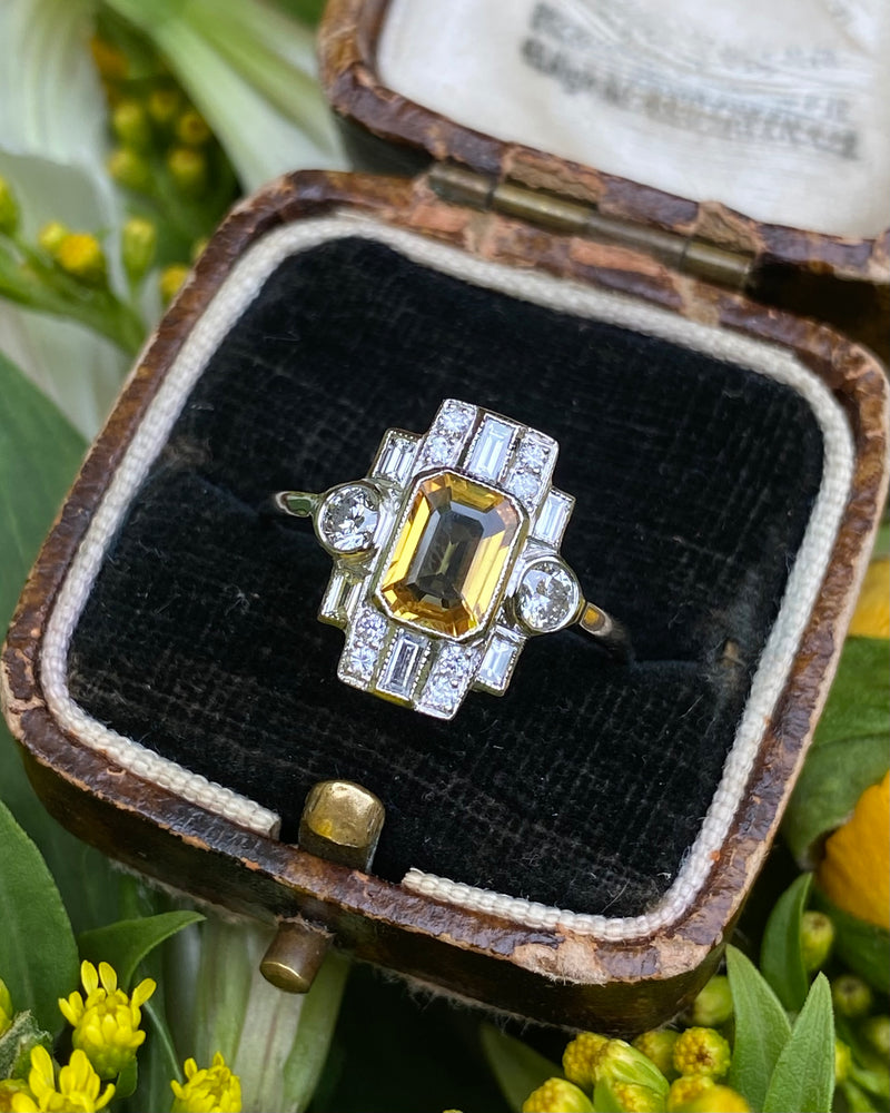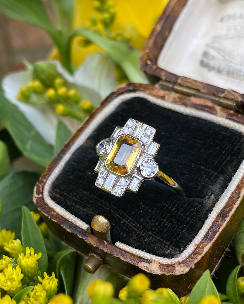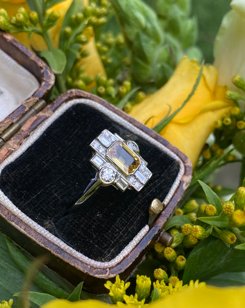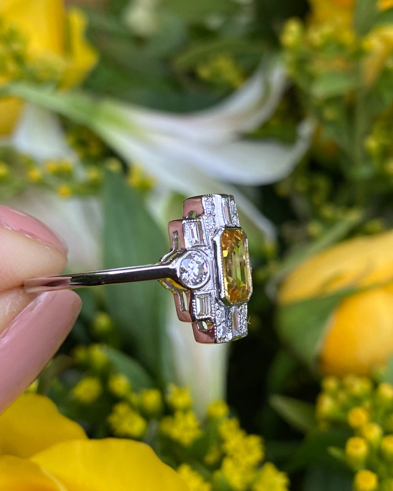 Art Deco Style Yellow Sapphire & Diamond Platinum Ring 0.55ct + 1.30ct