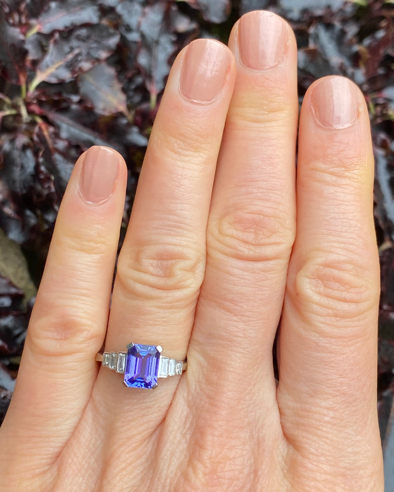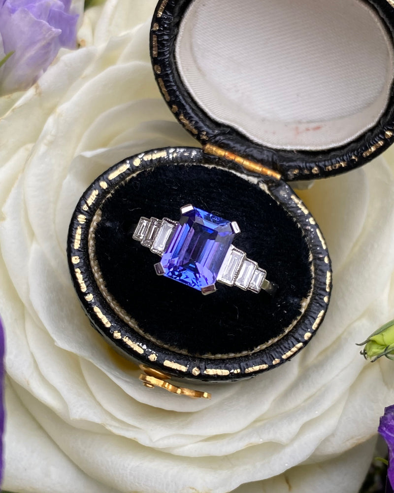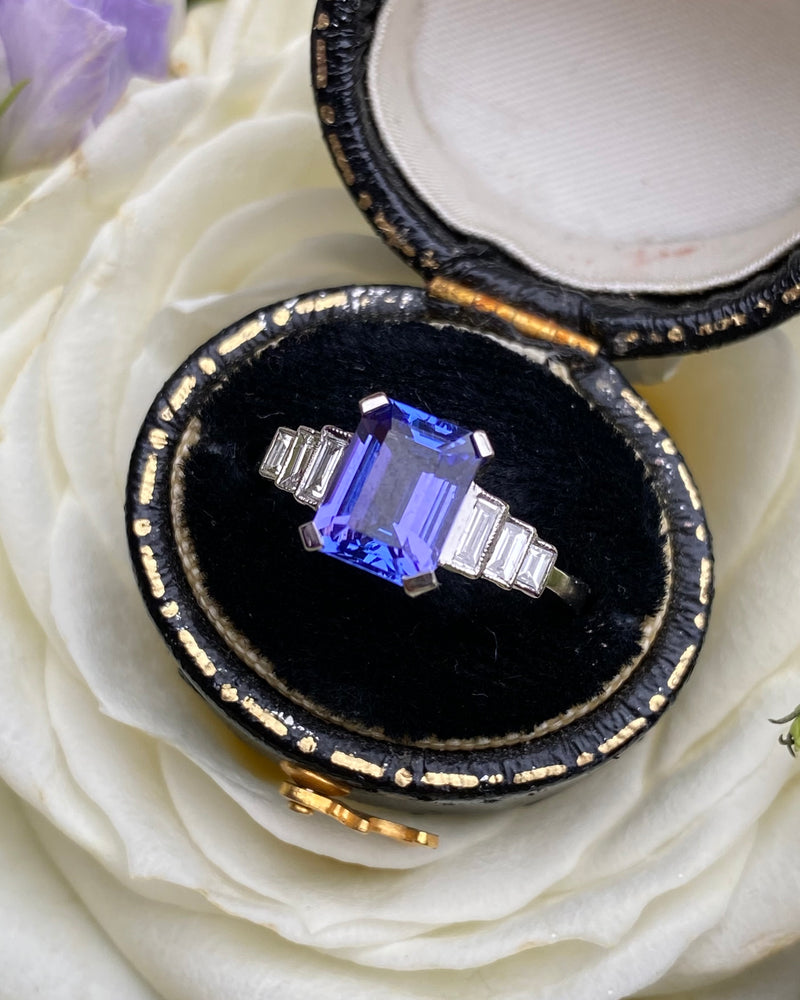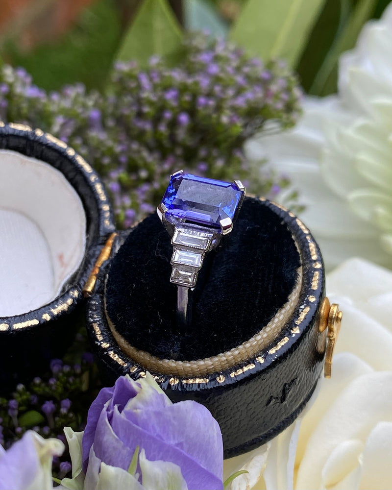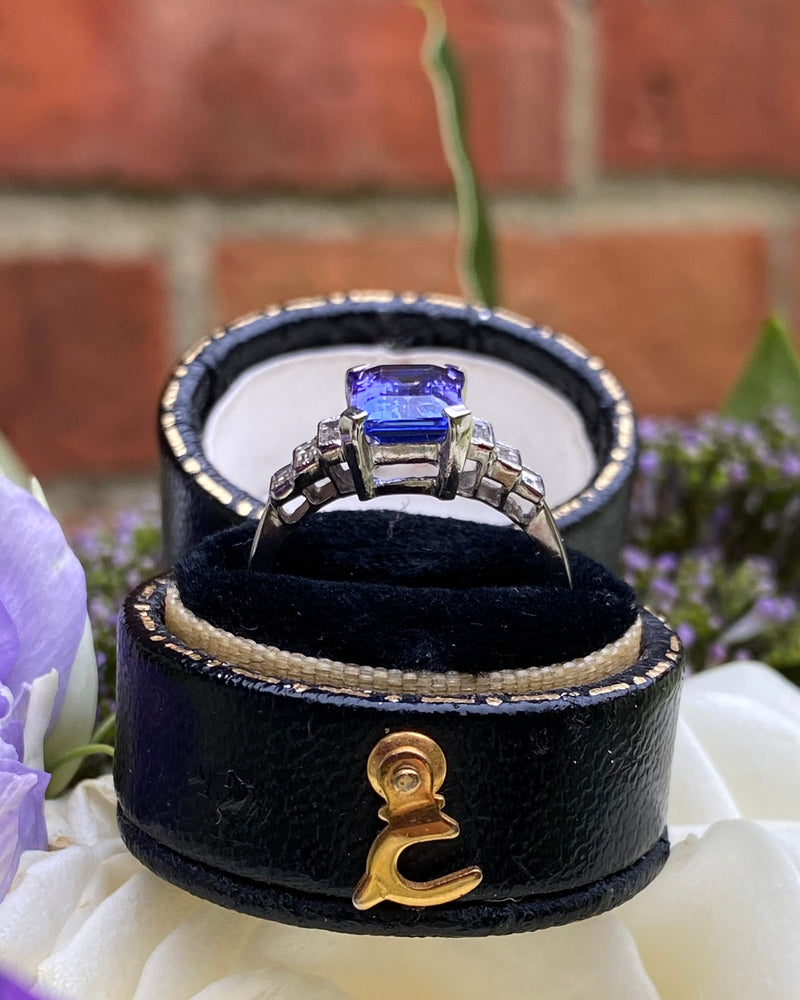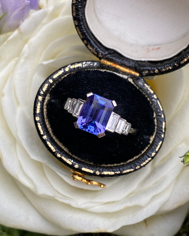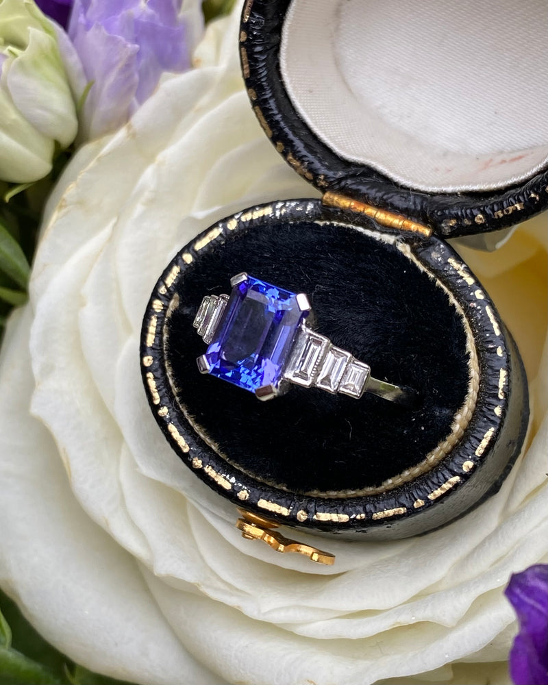 Art Deco Tanzanite and Diamond Ring Platinum 0.35ct + 1.65ct
