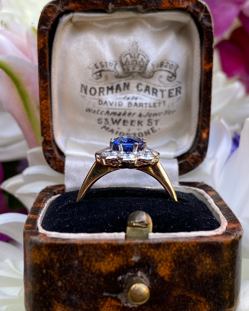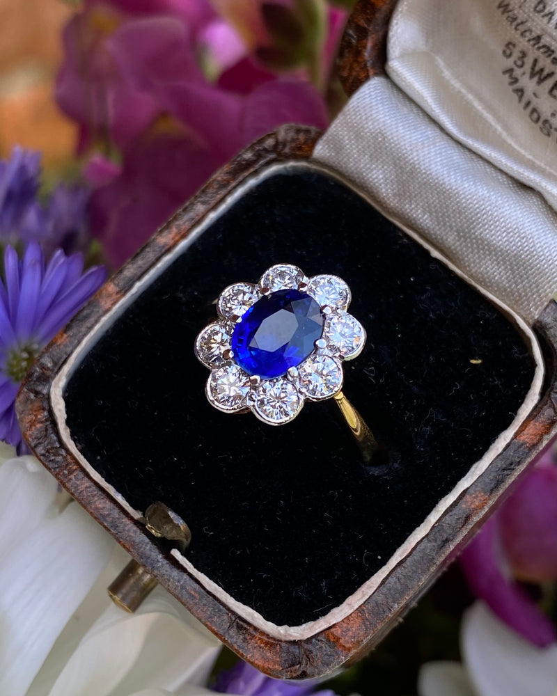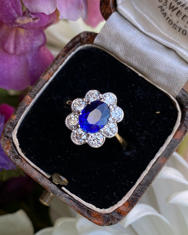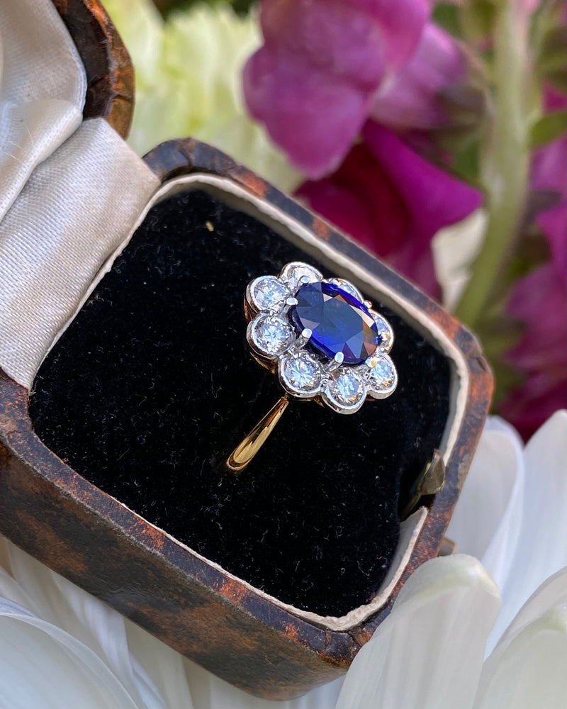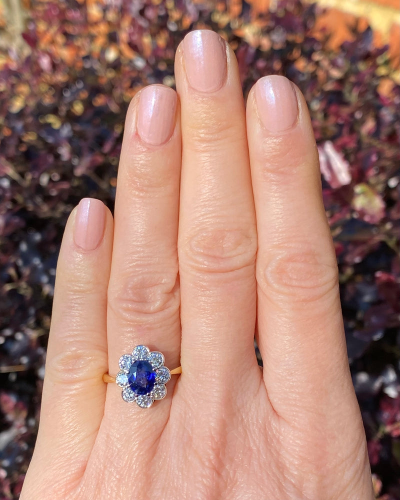 Sapphire and Diamond Cluster 18ct Yellow Gold Ring 0.95ct + 1.55ct
