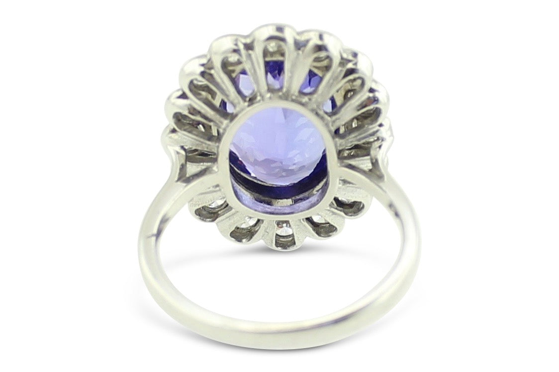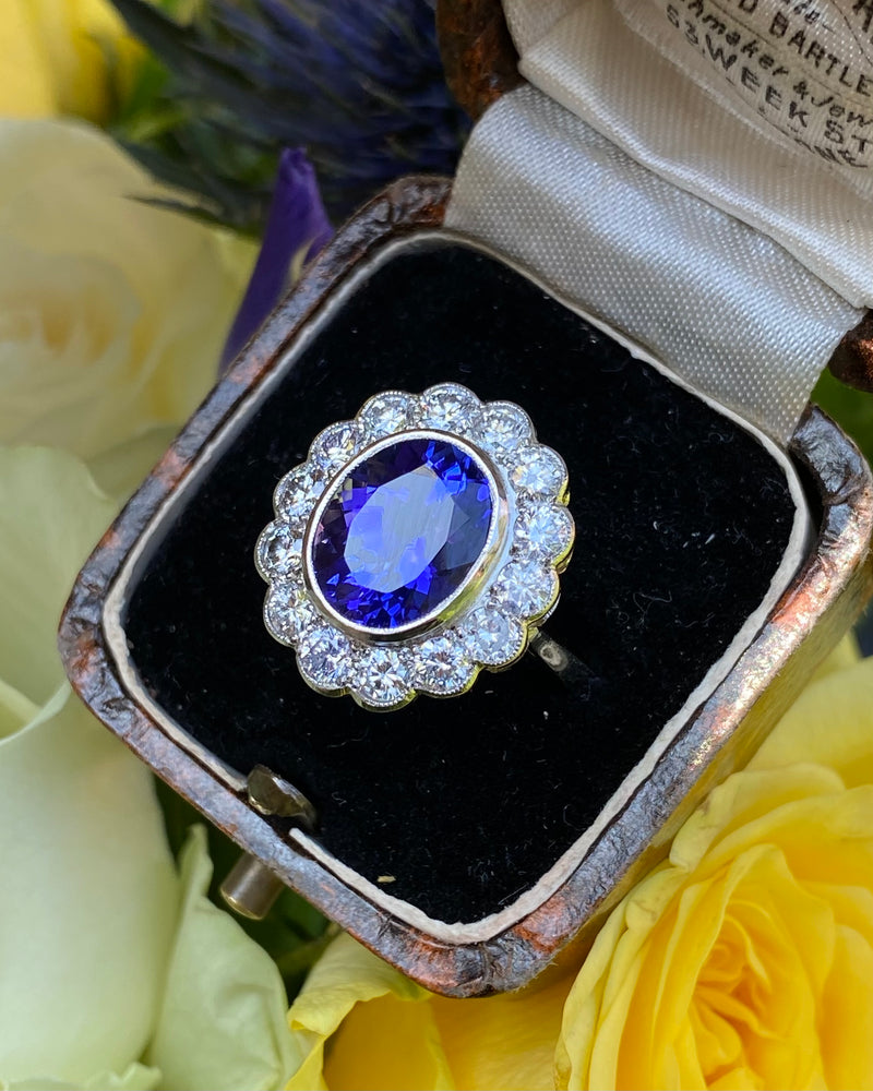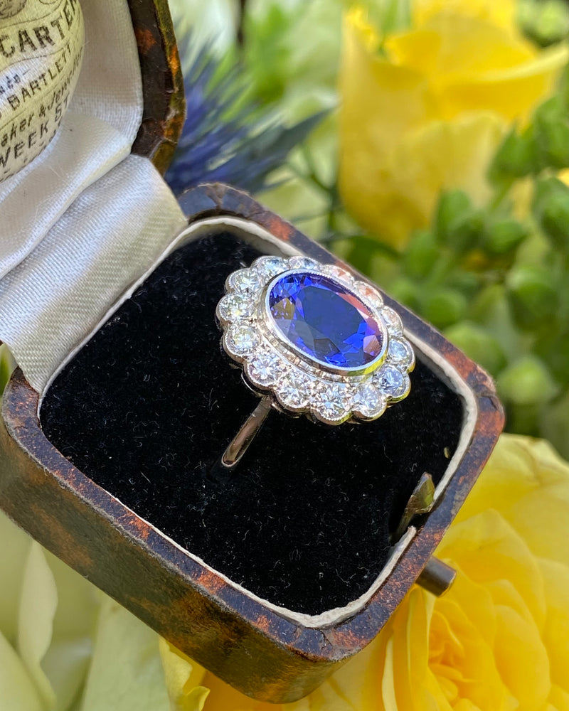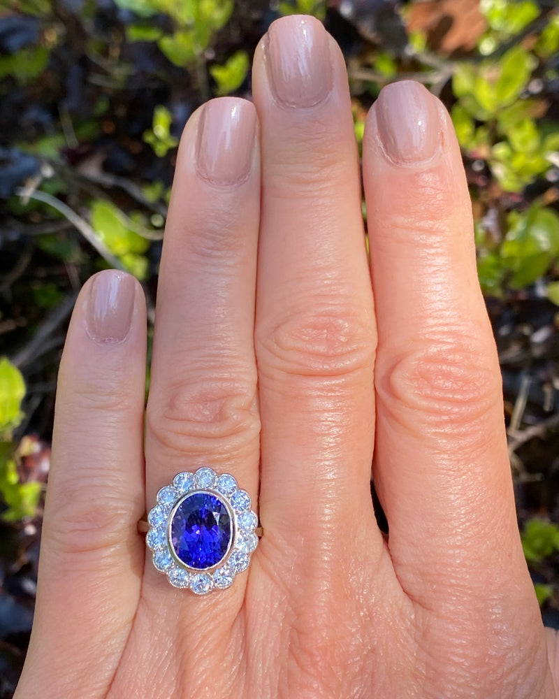 Tanzanite and Diamond Cluster Platinum Ring 1.25ct + 3.75ct