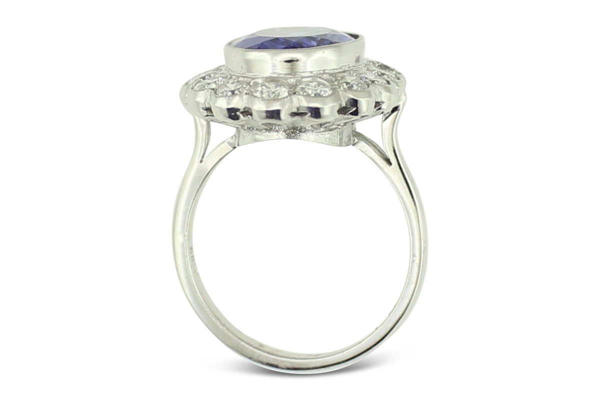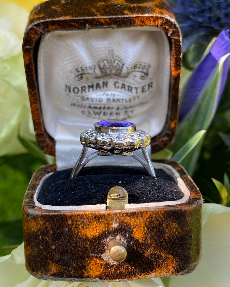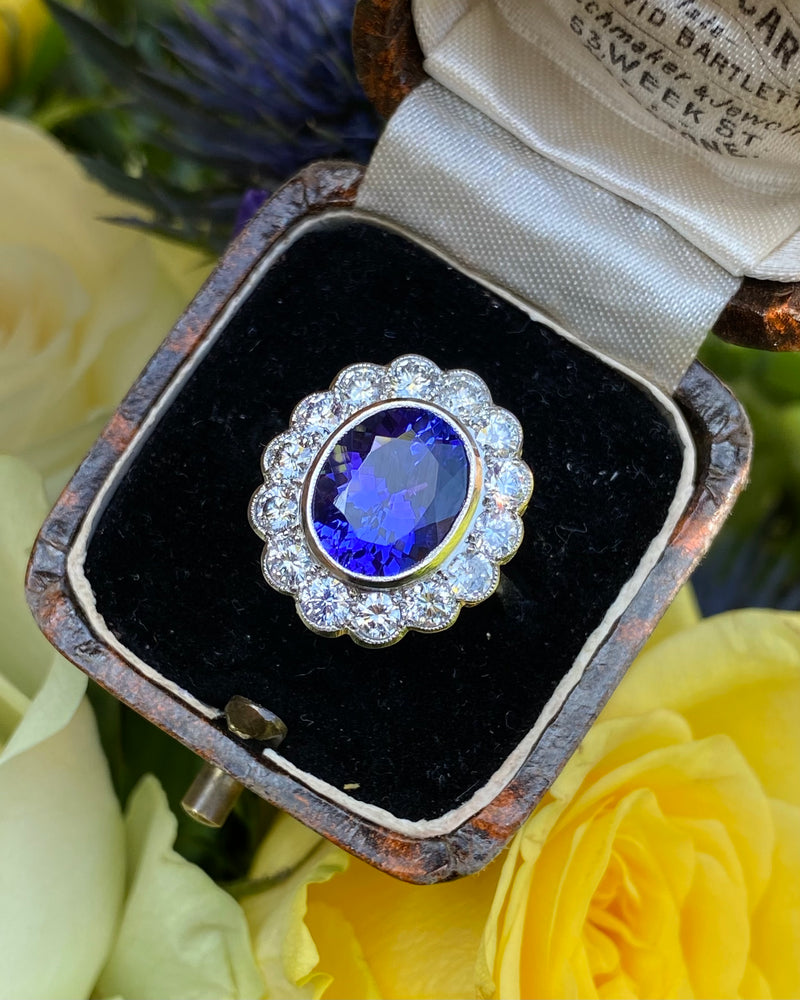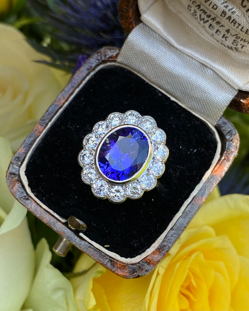 Tanzanite and Diamond Cluster Platinum Ring 1.25ct + 3.75ct