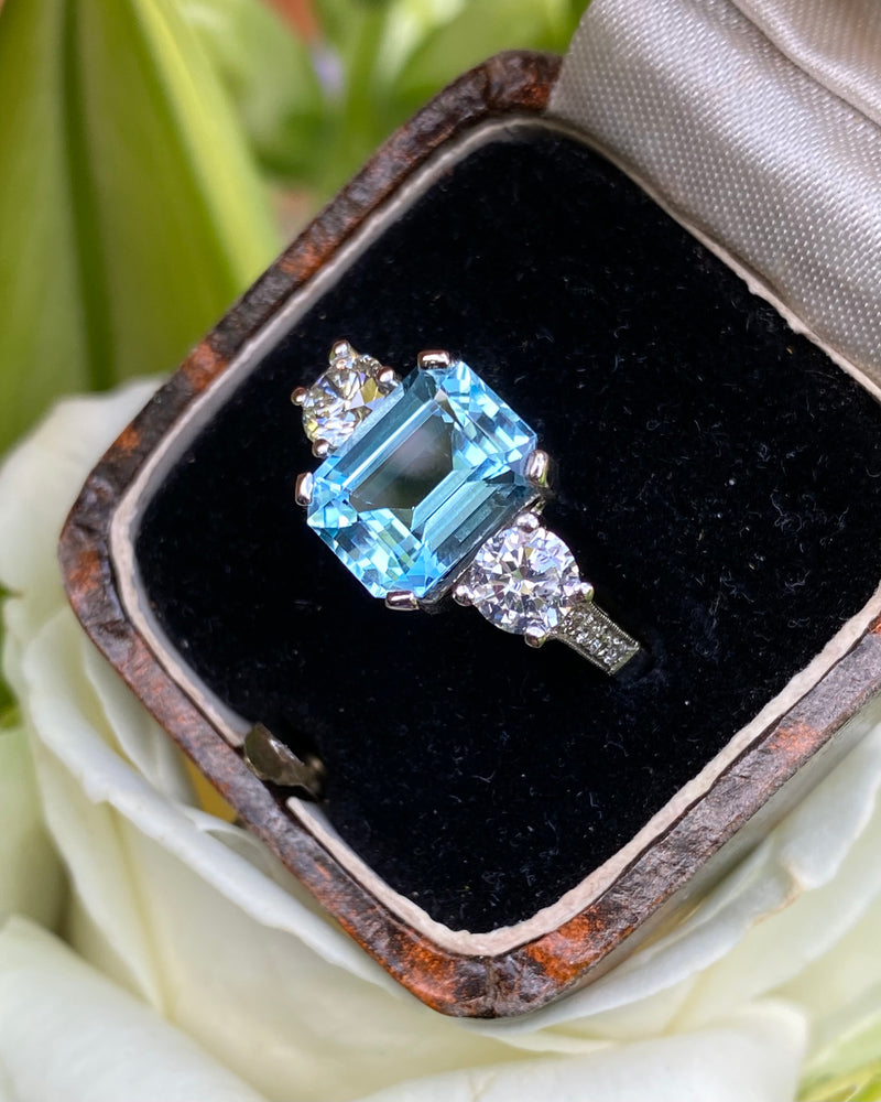 Aquamarine and Diamond Three Stone Platinum Ring 0.90ct + 2.90ct