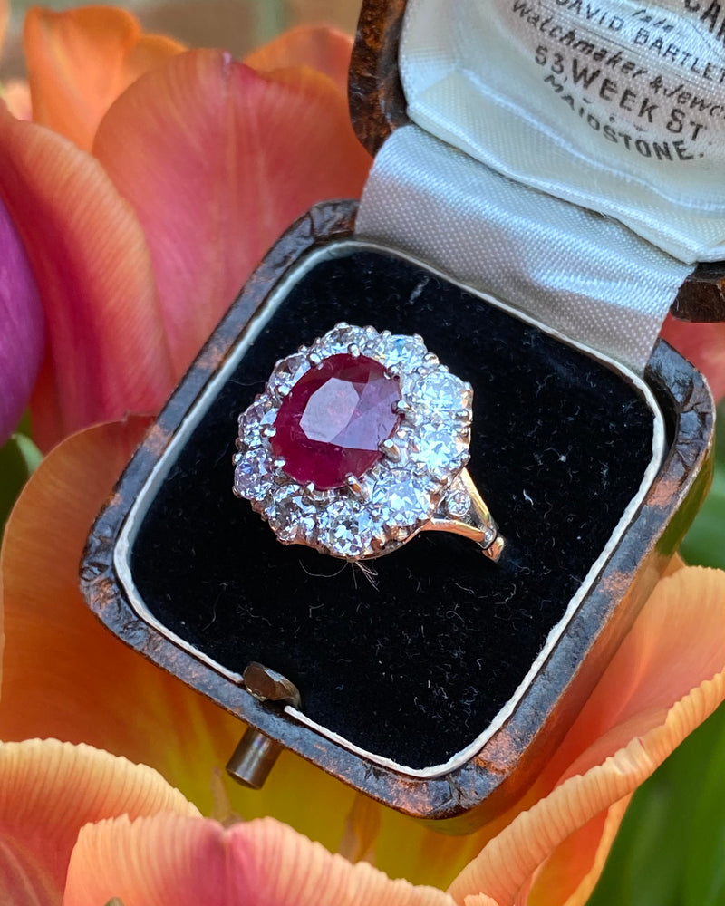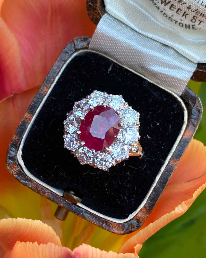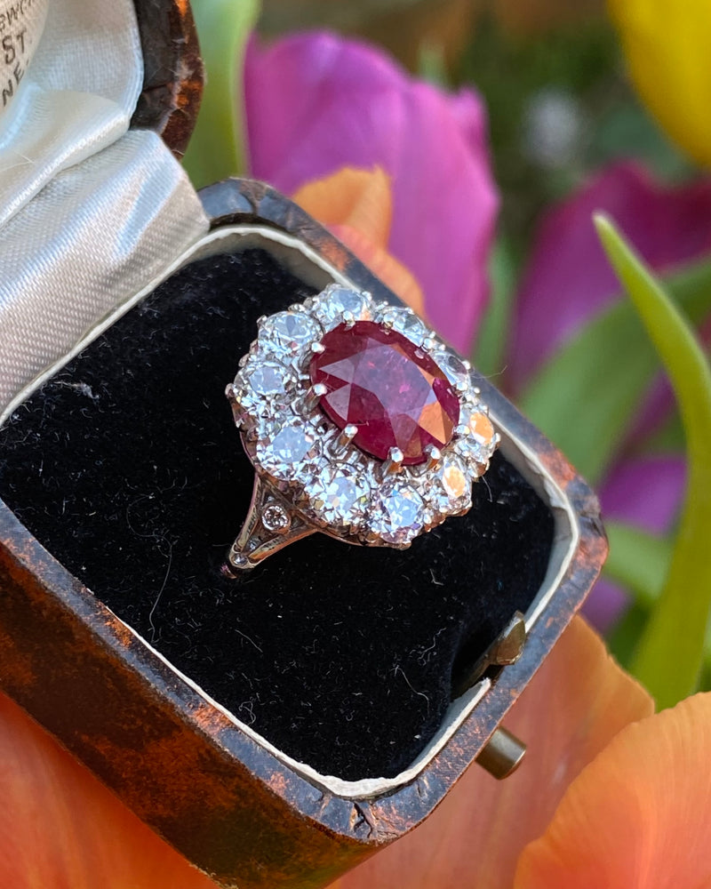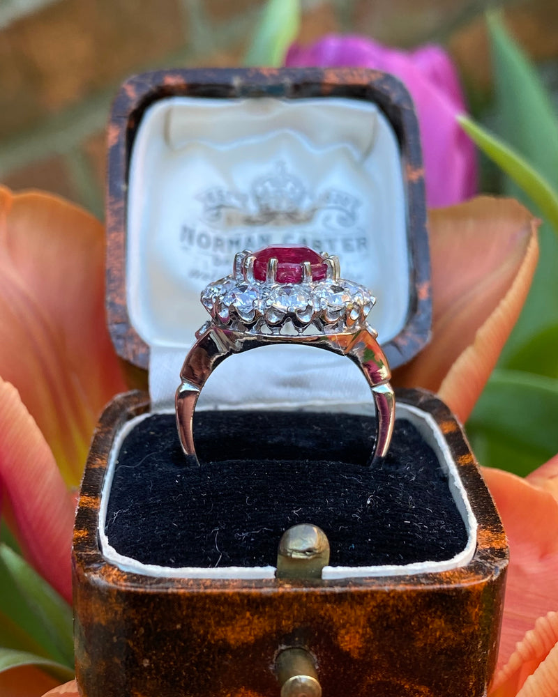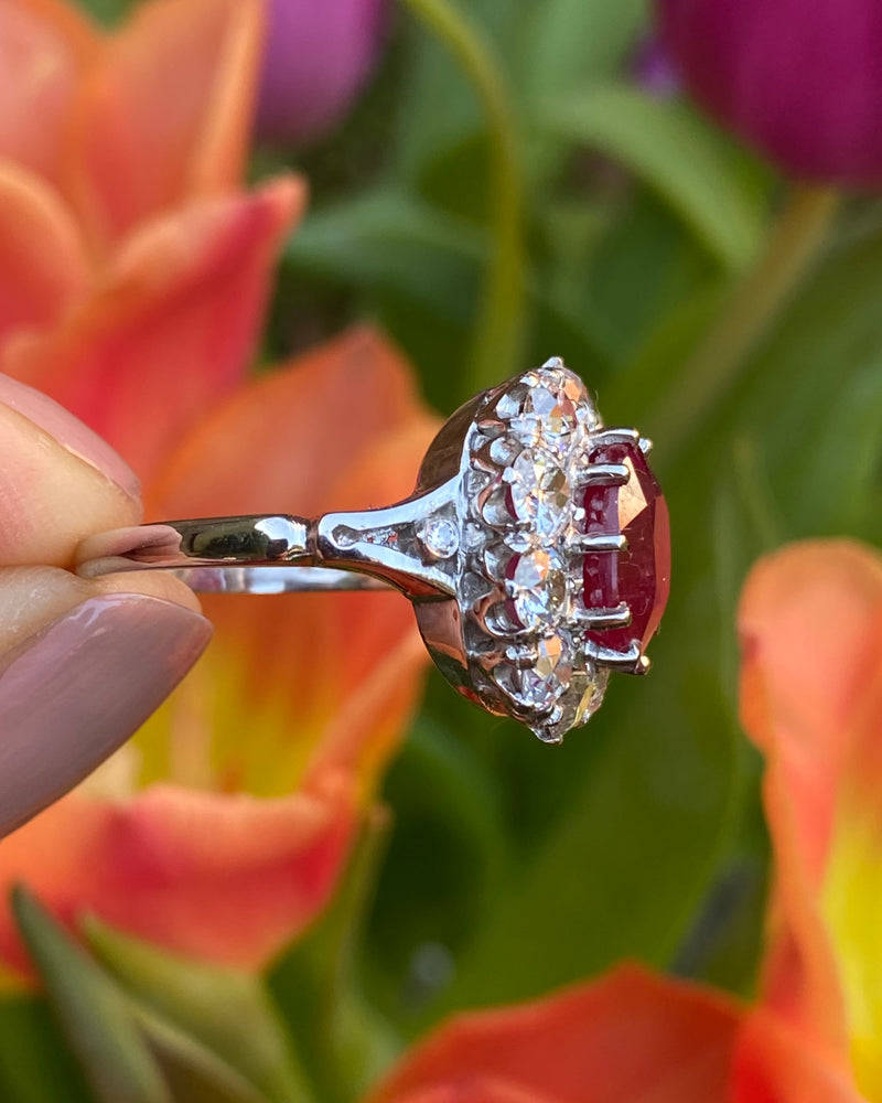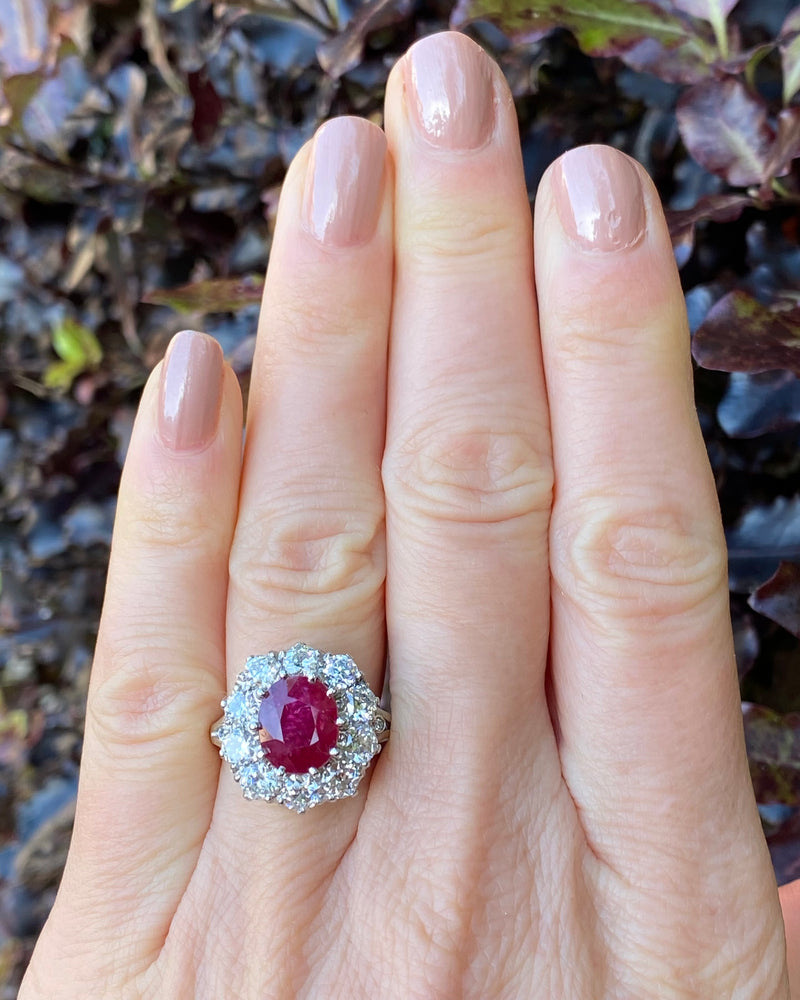 Victorian Ruby and Diamond Cluster Platinum Ring 2.10ct + 4.10ct